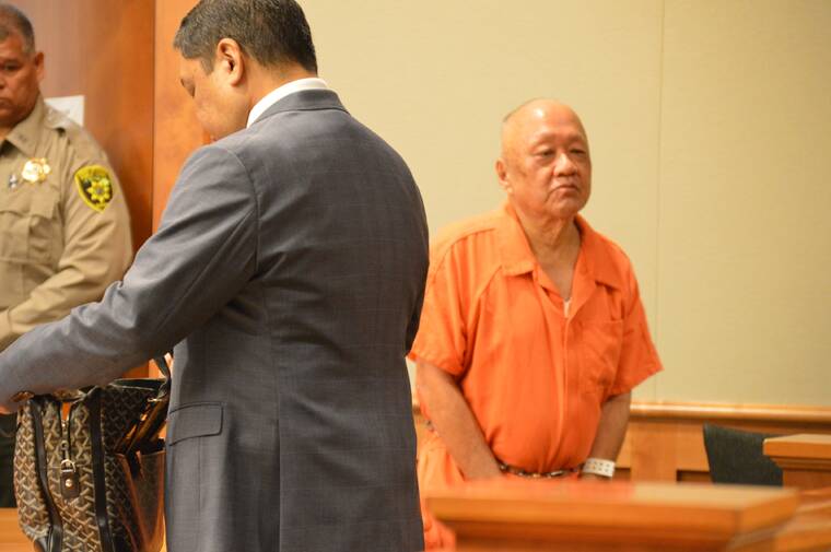 JOHN BURNETT/Tribune-Herald file photo Carlton Inada appears in Hilo Circuit Court on Dec. 15, 2023. His attorney, Deputy Public Defender Kenji Akamu, is in the foreground.