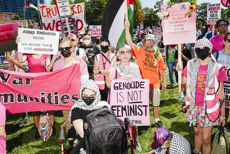 For hours, protesters furious over the Biden administration’s support for Israel and its failure to end the war in the Gaza Strip held signs, chanted and pushed for Harris to break with the president on those issues. The loudest challenge to the opening day of the Democratic National Convention was coming not from Republicans, but from the progressive left.