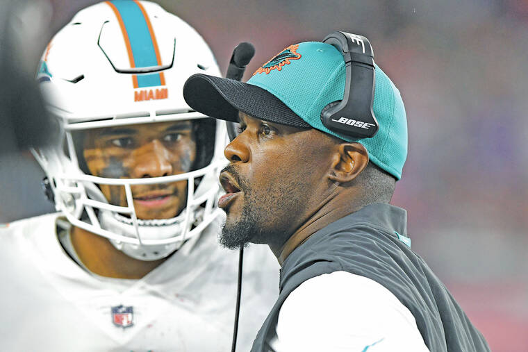 Flores was fired after the 2021 season, compiling a 24-25 record in three seasons in Miami. He later sued the NFL, Dolphins, Giants and Broncos, alleging racially discriminatory hiring practices.