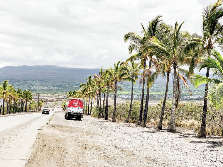 Coconut palms planted along the access road to Kona’s harbor are suffering from nutritional deficiencies and lack of water. By applying compost and mulch, they can better thrive. Gerald Kosaki, general manager of Hawaiian Earth Recycling, has offered to supply material for free to keep these trees vigorous and happy. Rebecca Villegas, Hawaii County councilwoman, is looking into ways to assist in applying the material around the trees. (Voltaire Moise/Courtesy photo)