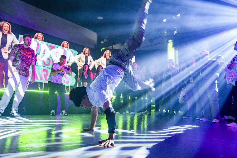 Hours before the first speaker took the lectern on Tuesday night, Hanna and his father, Shawn, who traveled with him, were roaming the second level of the United Center, filming a series of dance moves that they planned to stitch together into a post.