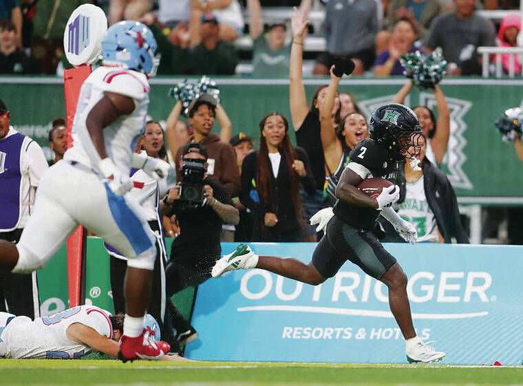 A crowd of 10,279 saw Schager pass for two touchdowns and run for two more to help the Rainbow Warriors win their first season opener in Timmy Chang’s three-season tenure as head coach.