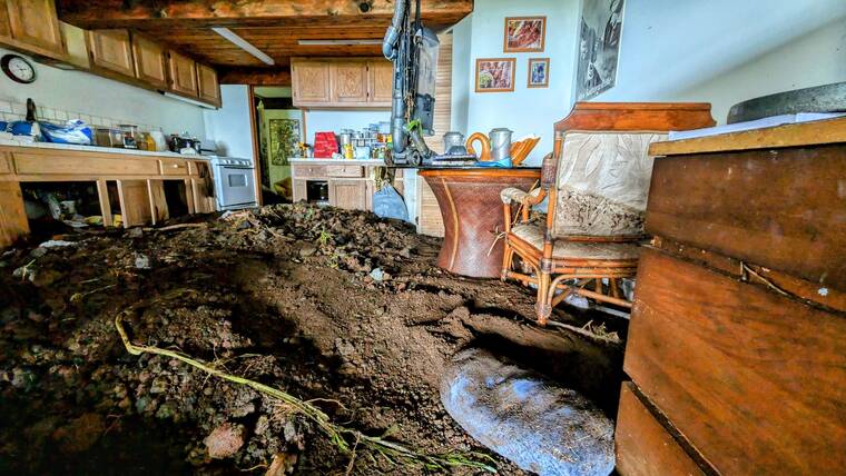 The flood deposited mud, boulders and other debris into the family’s yard, with some of it making its way inside the house.