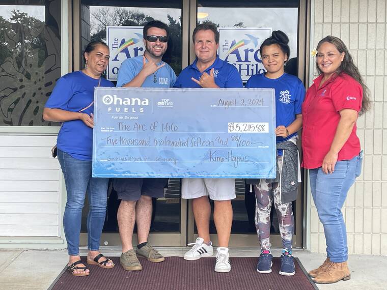 “The generous support of Ohana Fuels will help the Arc of Hilo fulfill its mission, especially with our school-to-work program and Career Exploration, which helps youth with disabilities prepare for community employment by age 18 alongside their non- disabled peers,” said Robert Efford, CEO of the Arc of Hilo.