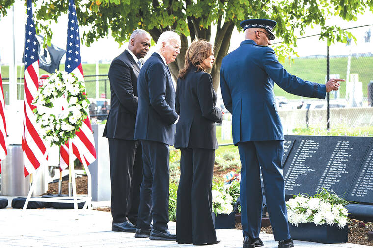 Vice President Kamala Harris and former President Donald Trump joined President Joe Biden and other dignitaries in a daylong journey to sites of the terrorist attacks of Sept. 11, 2001 — traveling separately but collectively paying homage to the nearly 3,000 people killed on that day of devastation 23 years ago in a remarkable display of shared grief.