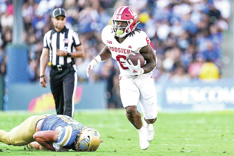 With the Bruins (1-1, 0-1) threatening, Indiana went on a nine-play, 87-yard drive that culminated in Rourke’s three-yard touchdown toss to Williams. Indiana piled on further with a 23-yard Rourke scoring pass to Omar Cooper Jr. and Elijah Green’s 14-yard touchdown run in the fourth quarter.