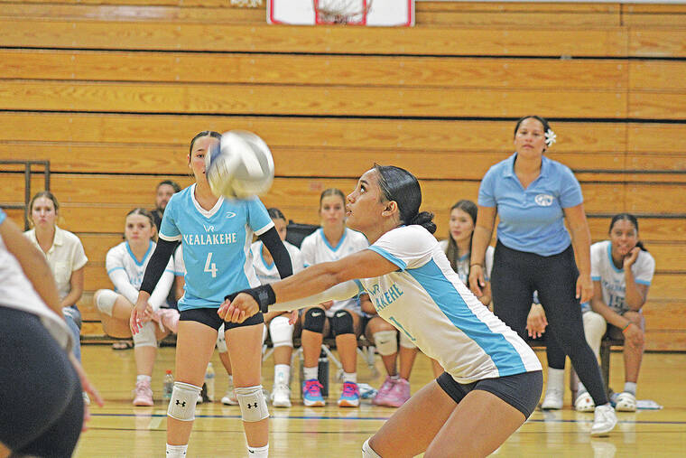 KAILUA-KONA — Hundreds gathered inside Old Kona Airport’s Kekuaokalani Gymnasium on Saturday morning to watch two Kona-side girls volleyball teams face off in a midseason match. Through togetherness, resilience and communication, Kealakehe beat Ehunui in three competitive sets.