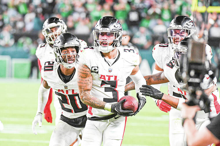The Falcons tried to close out the victory with a bold gamble with 5:38 to play. The Falcons went it on fourth-and-1 and running back Bijan Robinson was stuffed by Eagles safety C.J. Gardner-Johnson.