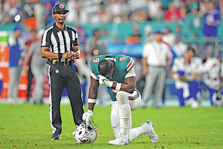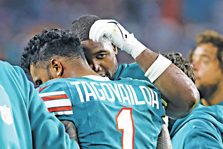 “We play a dangerous game, man,” receiver Jaylen Waddle said Monday with a shoulder shrug response when asked about what Tagovailoa, whom he has been friends with since their University of Alabama days together, was going through. “I think that the whole world gets to see how dangerous this game is, and how everybody puts their body on the line week in and week out.”