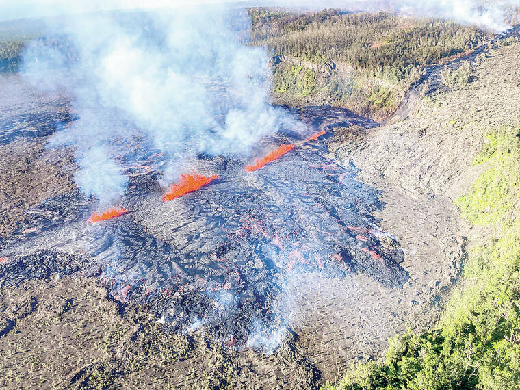 HVO has been in close contact with Hawai‘i Volcanoes National Park and the Hawai‘i County Civil Defense Agency throughout this eruption, which has featured a series of small fissure phases that have each lasted from hours to days. Each phase has increased in volume with the most recent being the largest to date. In total, the fissure system has stretched over 1.8 km (1.1 miles), and lava has covered more than 777,000 square meters (192 acres).