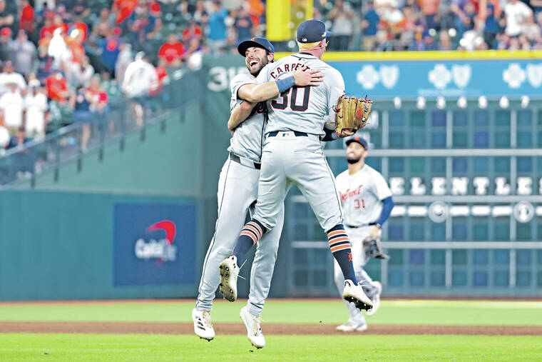 After Houston scratched across a pair of runs in the bottom of the seventh to secure a 2-1 lead, the Tigers fashioned a response against Astros reliever Ryan Pressly. Kerry Carpenter and Matt Veirling delivered back-to-back, one-out singles before Pressly (0-1) uncorked a wild pitch that plated Carpenter with the tying run. Pressly departed following his two-out walk to Colt Keith.