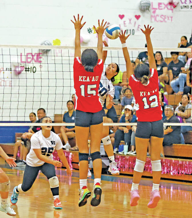 HILO — Waiakea girls volleyball opened its two-match homestand with its second consecutive straight-sets victory on Thursday in Hilo. The Warriors beat the visiting Kea‘au Cougars by scores of 25-10, 25-14 and 25-11. It was the seventh straight-sets win of the season for Waiakea.