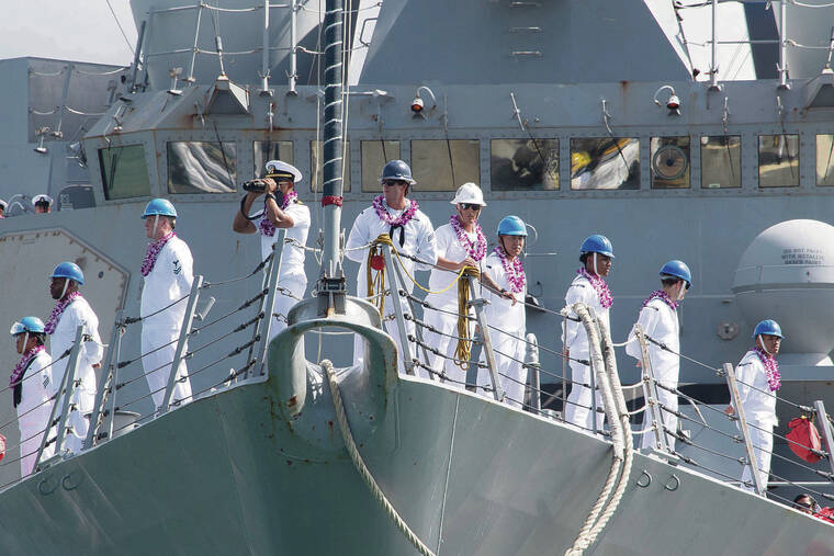 The Navy destroyer USS Daniel Inouye returned Friday to its home port of Pearl Harbor as it concluded its first overseas deployment. On the edge of the pier, friends and family of the ship’s crew waited with signs and lei to welcome their sailors back home.