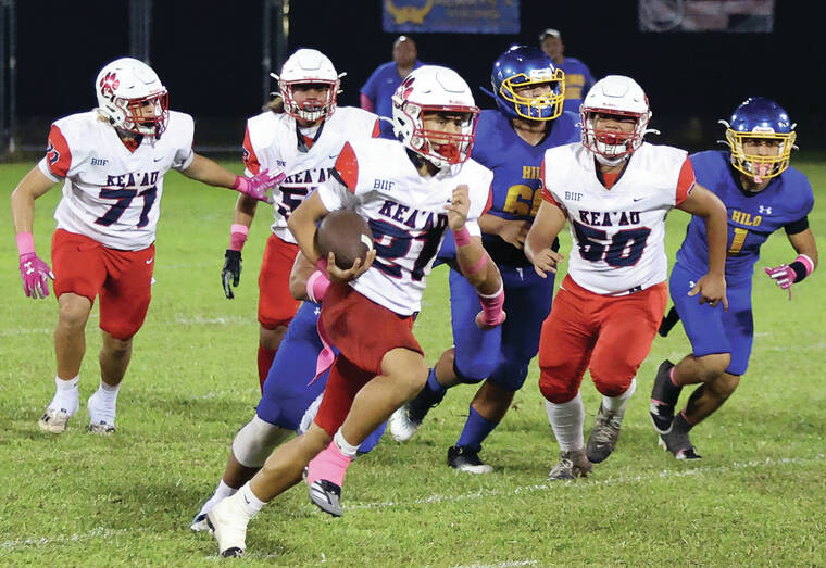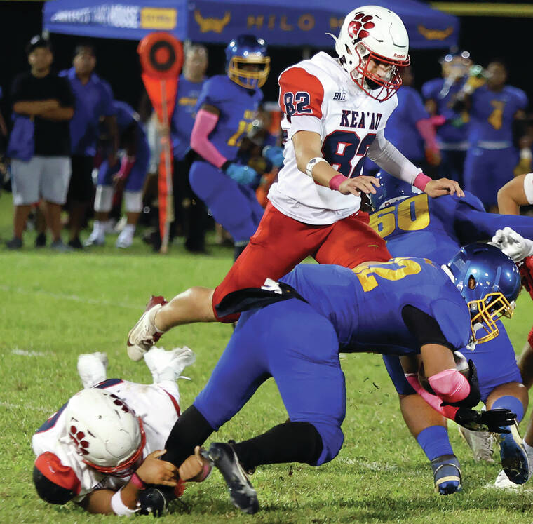 With the win, Hilo tied Kea‘at at 3-3 — automatically placing them both in the No. 2 spot in the division standings behind unbeaten Konawaena.