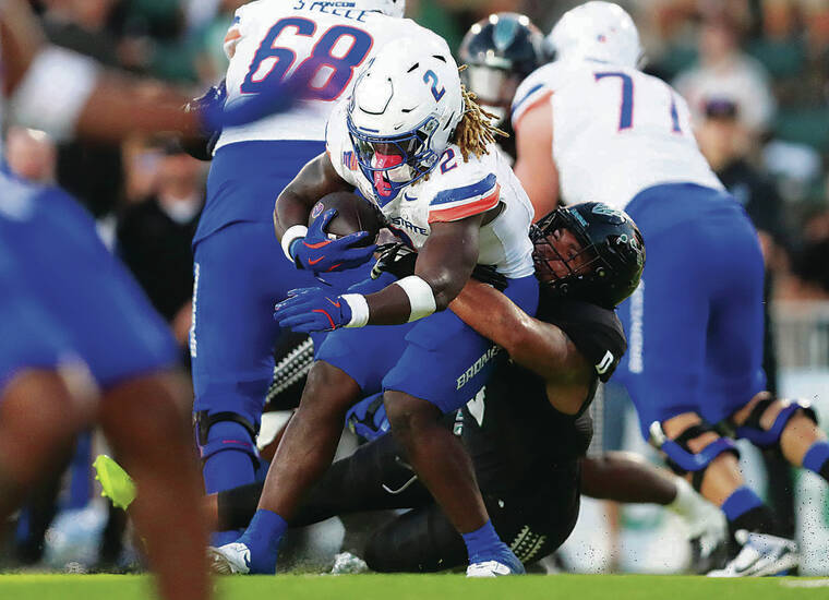 Caught in a rush, the Hawaii football team could not overcome 17th-ranked Boise State’s prolific rusher and aggressive pass rush in Saturday’s 28-7 loss at the Ching Complex.