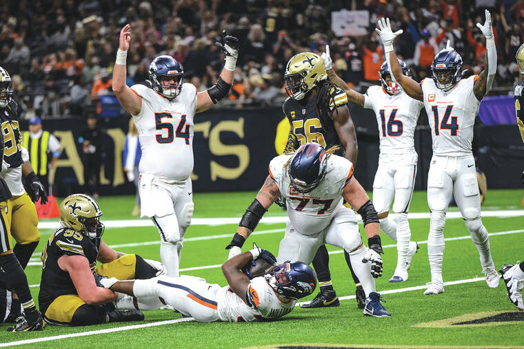Javonte Williams rushed for two touchdowns, Wil Lutz kicked four field goals and the visiting Denver Broncos handed the New Orleans Saints their fifth consecutive loss, 33-10, on Thursday night.