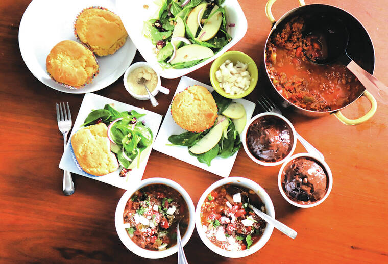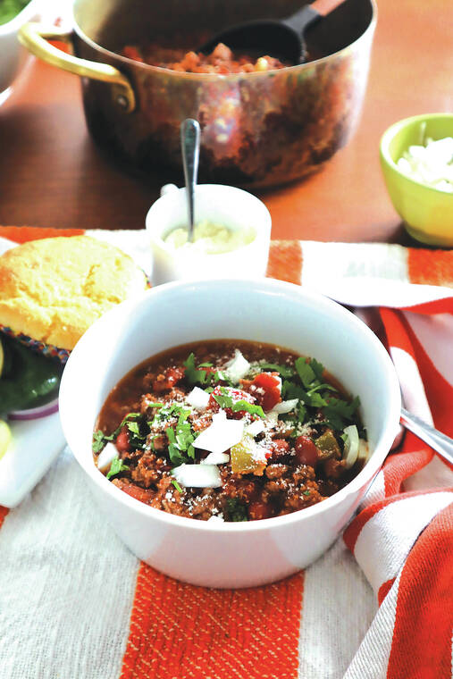 I tend to have a heavy hand with chili powder and cumin, which adds a nutty, smoky flavor, but that’s the beauty of chili. You can tame it by dialing down the spices, or crank it up to five-alarm level by adding a sprinkle or two of cayenne pepper, red pepper flakes and/or chipotle in adobo sauce.