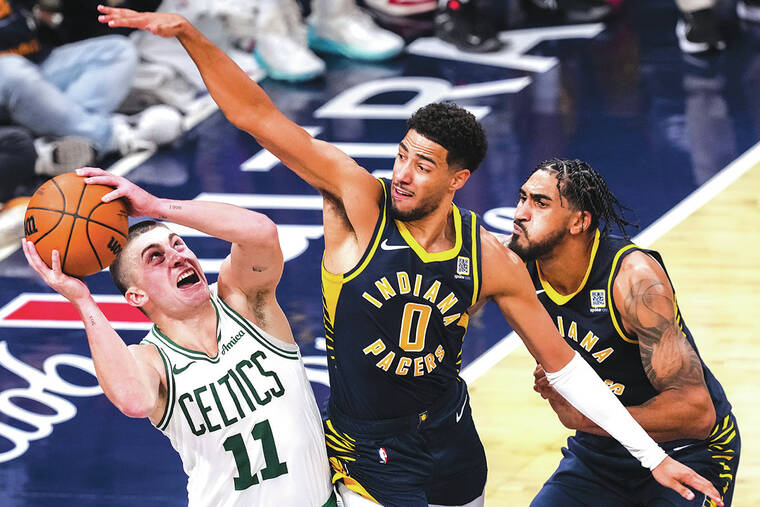 Tyrese Haliburton had 17 points and 12 assists for Indiana, which outscored Boston 11-8 in overtime.