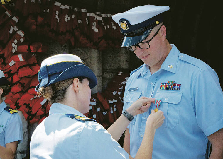 The awards were presented at an Oct. 18 ceremony at the J. Walter Cameron Center in Wailuku. During the ceremony the Coast Guard also honored 26 local boat captains and crew members who responded aboard the vessels Trilogy II, Marjorie Ann, Reef Explorer and Ali‘i Nui and an Expeditions dinghy with letters of appreciation. Coast Guard Lt. Dylan McCall received a commendation medal for his service during the incident.
