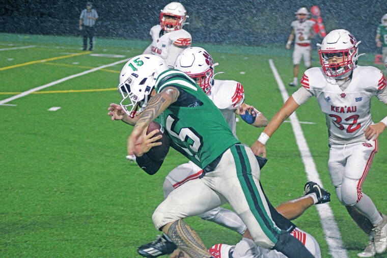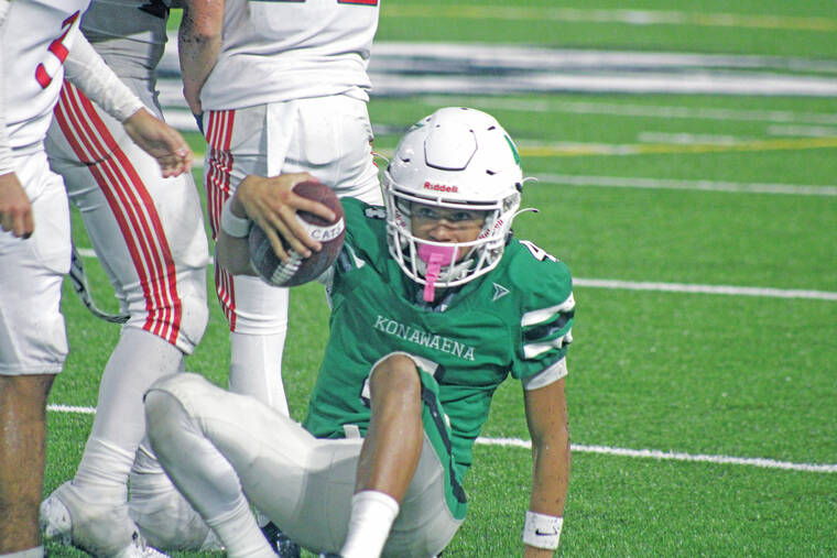 KEALAKEKUA — Clinching island titles have never been No. 13 Konawaena football’s ultimate goal, but head coach Brad Uemoto admitted that Saturday night’s Central Pacific Bank/Big Island Interscholastic Federation Division I Championship win over Kea‘au was a step in the right direction for where the Wildcats ultimately want to be at the end of the season.