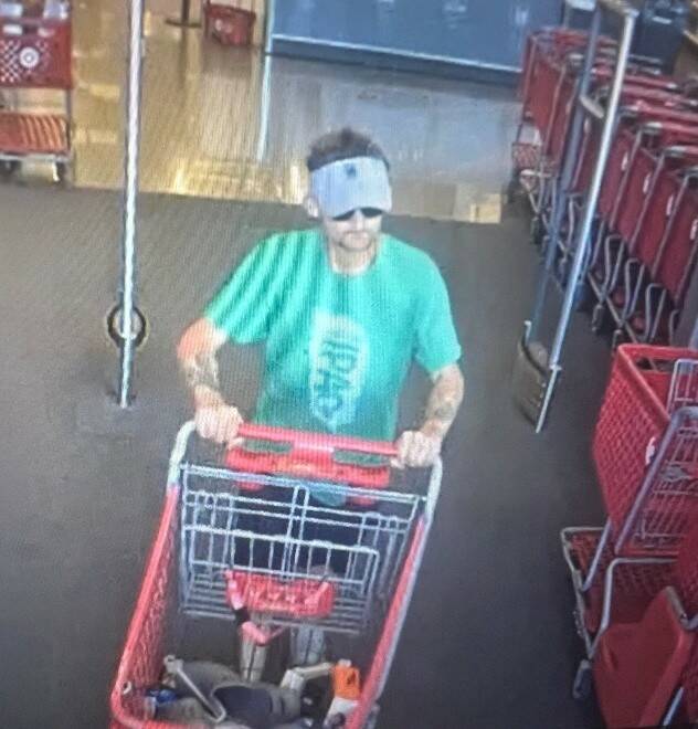 A person linked to one or more of these transactions was captured on video surveillance footage and is shown wearing a green-colored T-shirt, dark-colored shorts, dark sunglasses and a light-colored visor.