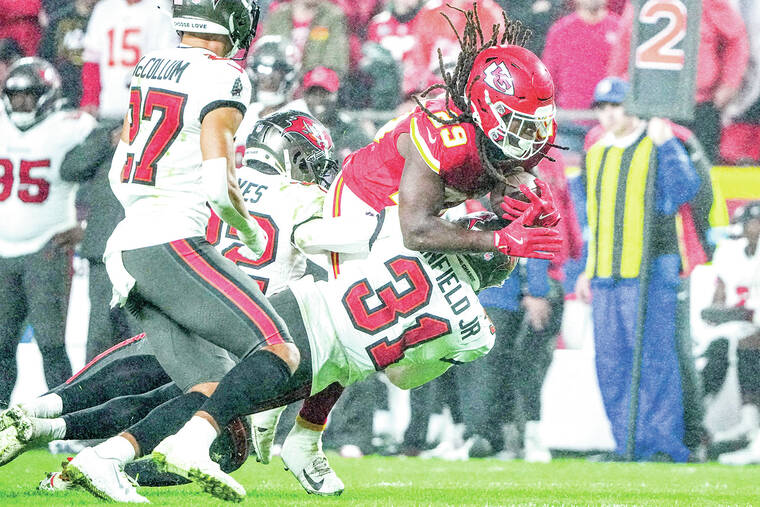 The Buccaneers scored a tying touchdown in the final minute of regulation, but the Chiefs won the coin toss at the start of overtime and never allowed Tampa Bay to possess the ball again. It was the first time all season Kansas City reached the 30-point mark.