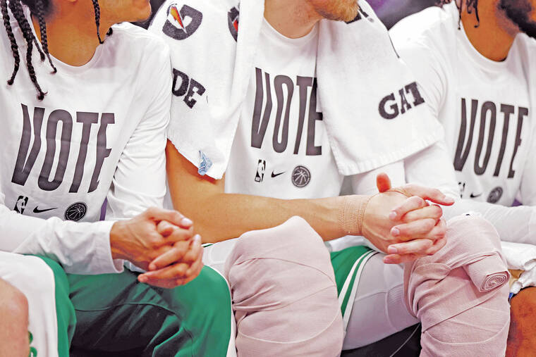 Spurs guard Chris Paul and Lakers forward LeBron James became vocal leaders in the league’s outreach to voters in 2020 as part of the concerted effort to shed light on initiatives to address racial inequality. Paul said in a “Get Out the Vote” campaign ad running during NBA games the past two weeks: “Voting is a team sport. Take people with you.”