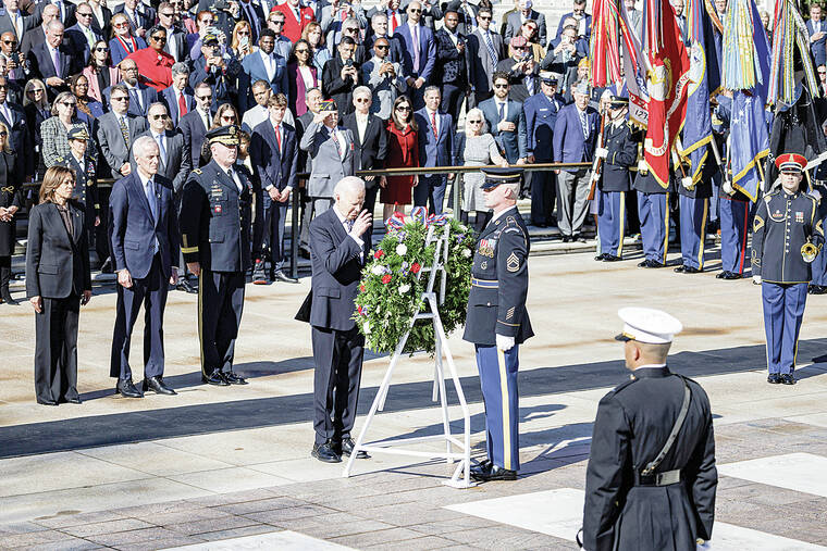 WASHINGTON — President Joe Biden urged Americans to take a moment to honor those who serve in the military and their families on Monday, using the backdrop of Arlington National Cemetery to observe Veterans Day one last time as the country’s commander in chief.