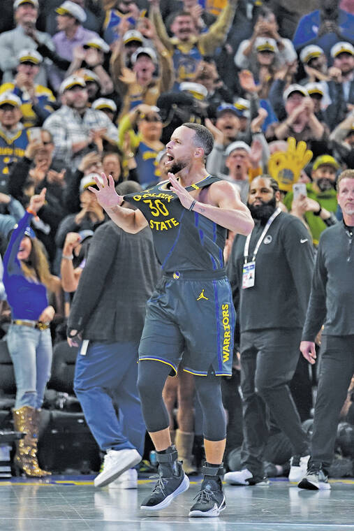 Then with two minutes left, Curry drove past Doncic and bounced in a finger roll, reclaiming a one-point lead. Thompson borrowed his shimmy earlier, and he stole Thompson’s patented snarl.