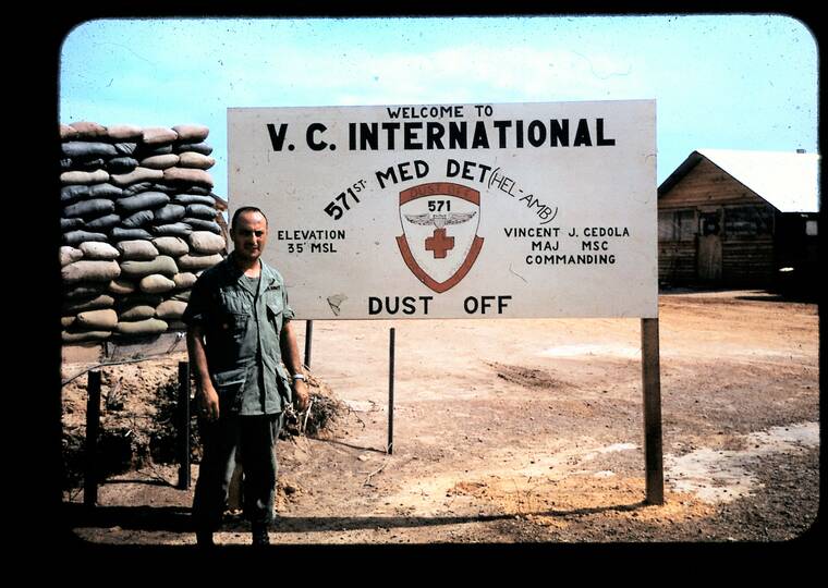 Vince Cedola of Kona, a retired Army lieutenant colonel, served two tours flying Bell UH-1 Iroquois helicopters, known in the military as “Hueys.” The first was in 1964-65 with the 571st Medical Detachment, at Soc Trang far south in Vietnam’s Mekong Delta. The second was in 1967-68 as unit commander of the 82nd Medical Detachment at Phu Bai, a former military base near Hue in central Vietnam, just south of the demilitarized zone (DMZ) that separated what was then North Vietnam and South Vietnam.