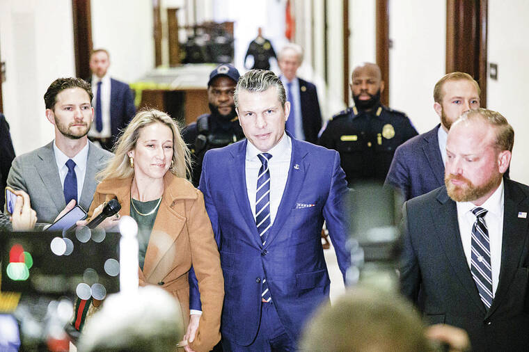 Hegseth, until recently a Fox News host, was accused of sexual assault in 2017. While he denies the allegation, he struck a confidential settlement with his accuser.
