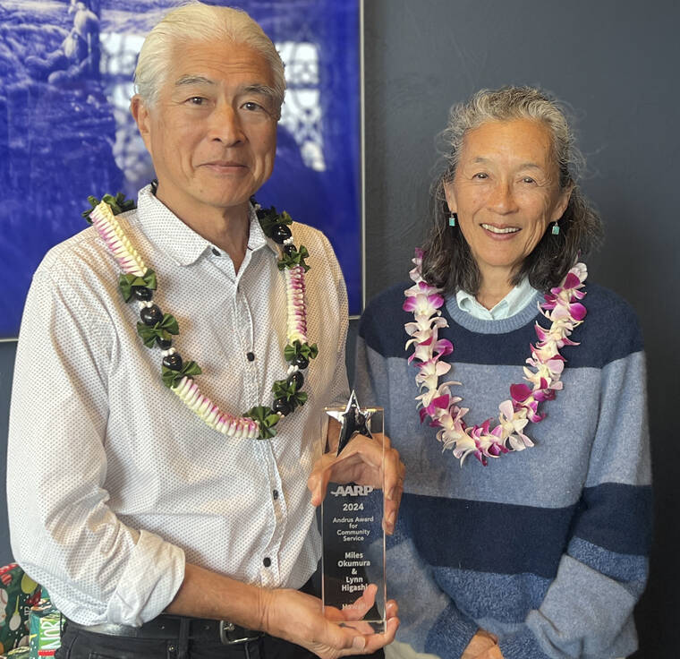 Honokaa residents Miles Okumura and Lynn Higashi have been selected by AARP — the nonprofit organization for people 50 and older — to receive the 2024 AARP Hawaii Andrus Award for Community Service, the association’s most prestigious and visible state volunteer award for community service.