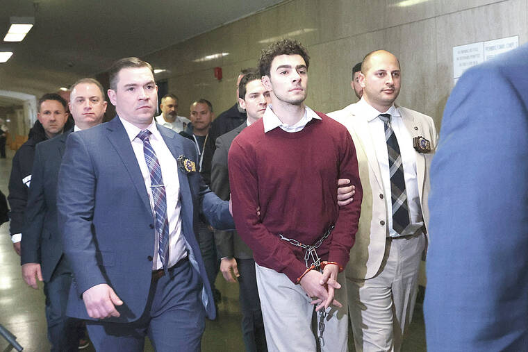 Mangione entered the courtroom for his arraignment Monday wearing a maroon sweater and light-colored pants. His wrists and ankles were shackled. During the hearing, his lawyer, Karen Friedman Agnifilo, told the judge she was concerned about her client’s right to a fair trial. “His rights are being violated,” she said.
