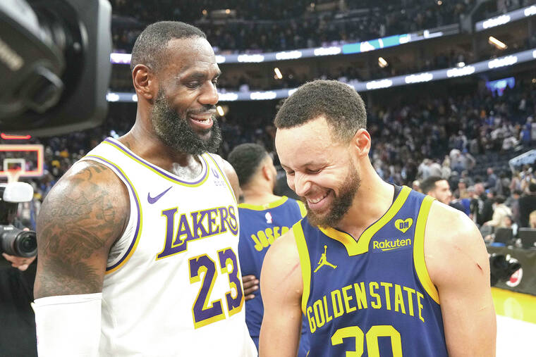 The first three meetings were at the height of their powers, with Curry’s Warriors and James’ Cleveland Cavaliers dueling in 2015 and 2016 as reigning NBA finalists. James had joined the Lakers for the third matchup in 2018, when the Warriors again were defending champs.