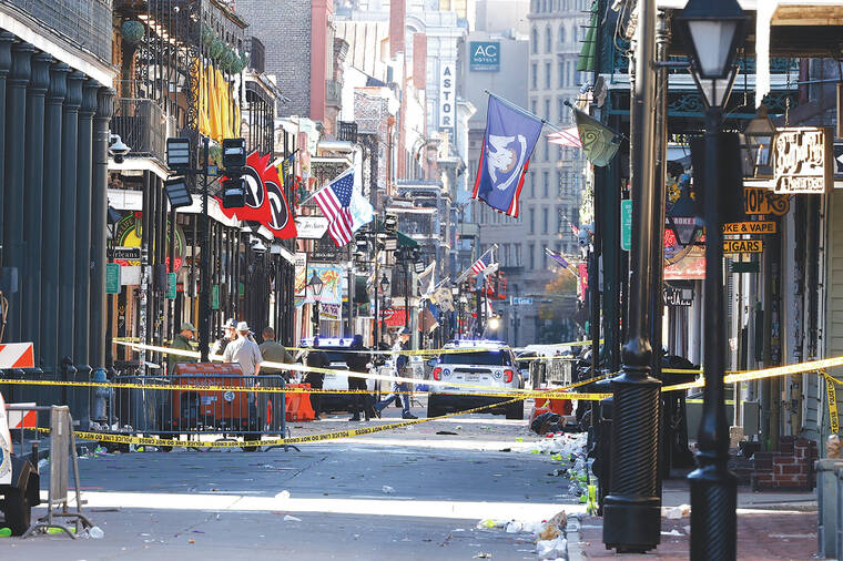 WASHINGTON — An Islamic State group flag, weapons and a “potential” improvised explosive found in the truck that plowed through crowds in New Orleans on New Year’s Day, killing at least 10 people, have raised the specter that the international terrorist group played a role in the attack.