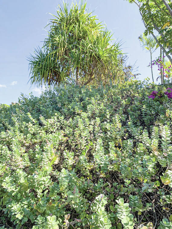 Remember, if folks begin to show more interest in native trees and Polynesian introductions, our nurseries can then afford to carry them as part of their regular stock. County and State buildings and roadways are ideal for them since most do not have aggressive root systems. With the Queen Kaahumanu Highway widening project, wouldn’t it be great to see the median strip landscaped with native Loulu palms, Kamani, Naupaka and other native and canoe species. These canoe plants and many native plants may be used instead of grass that requires much more maintenance and water.