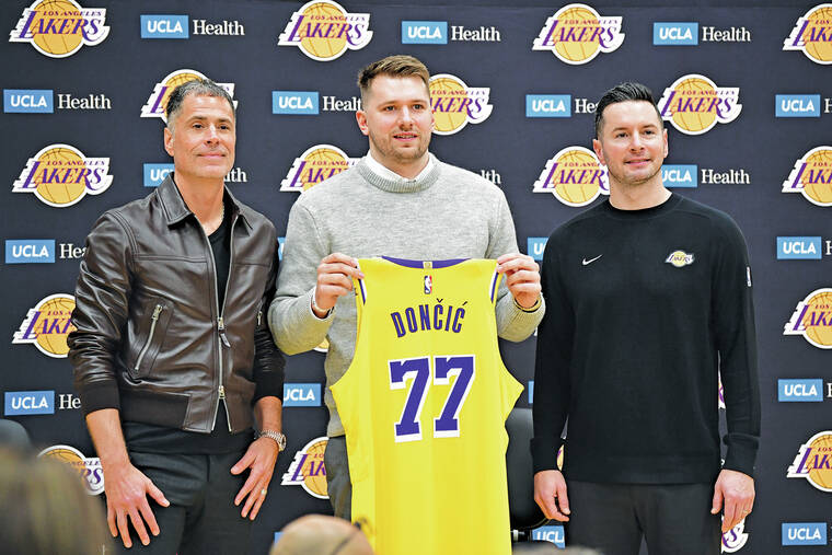 Lakers vice president of basketball operations and general manager Rob Pelinka said that combining Doncic, a 25-year-old generational and global superstar, with the Lakers, one of the most famous sports franchises in the world, is a “seismic event in NBA history.”