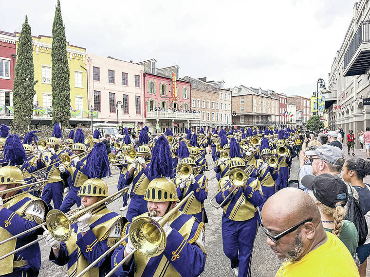 “We know that’s kind of what makes our city unique,” said Fuller, 39, as her five-year-old daughter Charlotte held her hands aloft to catch bead necklaces from passing floats.