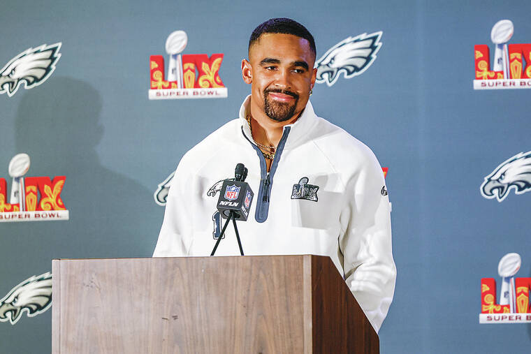 The Eagles have the hotter quarterback, Hurts’ designed runs more effective this year than Mahomes’ 14% rate of off-target passes. Hurts also has better receiving weapons — A.J. Brown and Devonta Smith over Kelce — and one of the game’s best offensive lines.