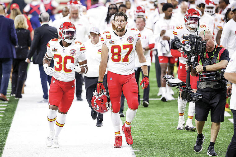 Sunday’s final images of Kelce — walking through the green confetti, strolling forlornly through the bowels of the stadium in hopes of avoiding intense scrutiny — contrast greatly from those we have seen during his 12-year legendary career: the rumbles toward first downs or end zones, or the rowdy celebrations.