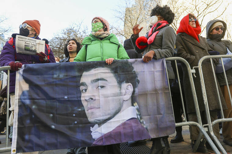 A rally was organized outside the lower Manhattan courthouse where a hearing was to be held in his case Friday afternoon, with flyers trumpeting support “for people harmed & killed by insurance industry greed.”