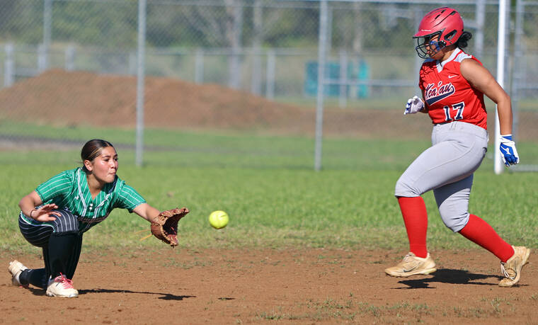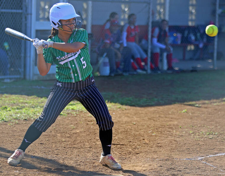 KEA‘AU — Tied 11-11 with Konawaena in the bottom of the seventh inning, Kea‘au softball second baseman Reyna Pettypool smacked a one-run walkoff single, sending home center fielder Tihana Kalawe to escape with a 12-11 win Wednesday at Kea‘au High School.