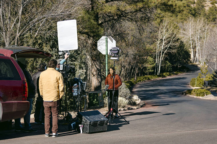 On Friday, a small group of reporters gathered outside the neighborhood where the couple had been living. Their gated community, Santa Fe Summit, is just beyond the city limits. A security guard was sitting at the entrance, which lies along a winding road with views of the mountains.