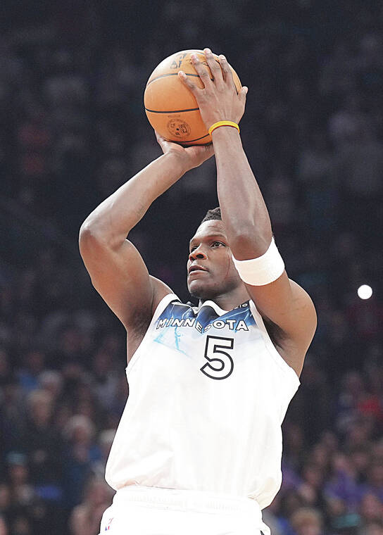 The splurge marked Edwards’ sixth effort of 40 or more points this season. He made six 3-pointers in his return after drawing a one-game suspension for technical foul accumulation (16).