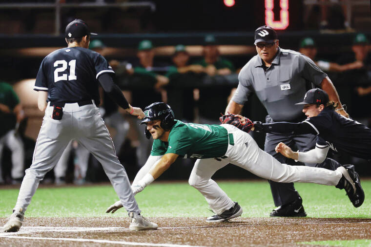 “We rolled the dice on that hit-and-run,” Hill said. “I think he got a change-up, maybe a slider. … But, hey, that’s the ‘Manoa Magic.’ That wind comes through the valley this time of night, swirls around, and it happened again. That’s the epitome of the ‘Manoa Magic’ right there.”