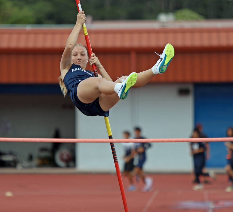 KSH sophomore Judah Kanoa had himself a day in hurdles, finishing with personal-best times in the 110-meter race (15.76s) and 300-meter race (40.82s).