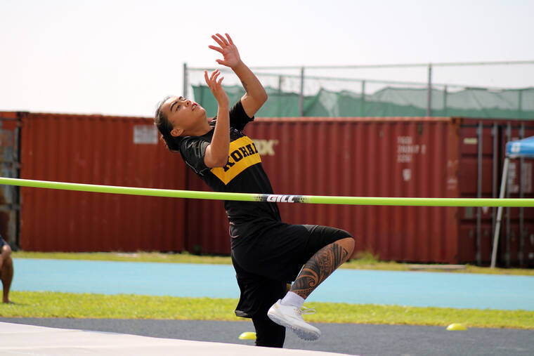 Elias Malapit of Konawaena set a season-best distance during his win in the boys discus, throwing a distance of 46.05 meters (151-01). Joenica Sy-Rondaris clinched a personal record in the girls pole vault, leaping 2.51 meters (8-03.00) in her first-place finish.