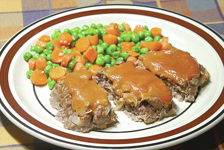 A sweet and tangy sauce tops the loaves with extra flavor. Garlicy carrots and peas complete the meal.