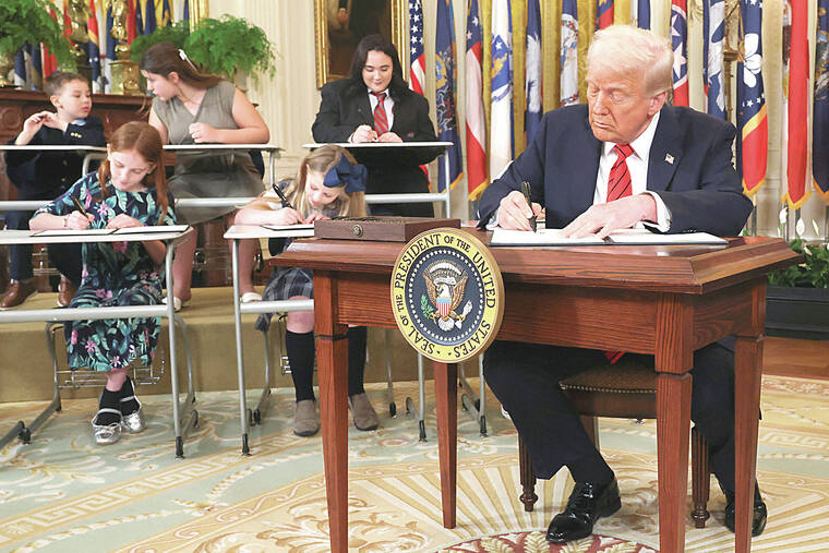 Surrounded by schoolchildren seated at desks in the East Room of the White House, Trump signed a long-awaited executive order that he said would begin dismantling the department “once and for all.” The Trump administration has cited poor test scores as a key justification for the move.