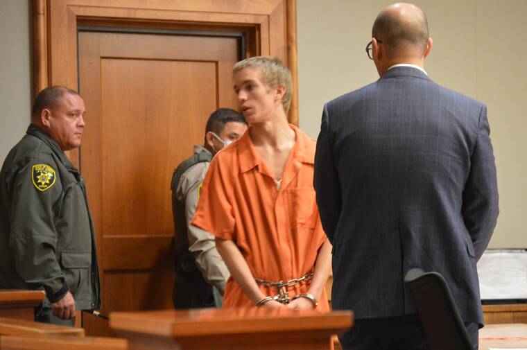 JOHN BURNETT/Tribune-Herald Silas Zion turns toward family members in the courtroom gallery Friday in Hilo Circuit Court.